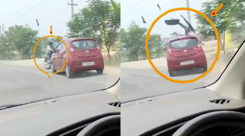 ఢీకొట్టిన కారు.. గాలిలో ఎగిరిపడిన ఇద్దరు వ్యక్తులు!
