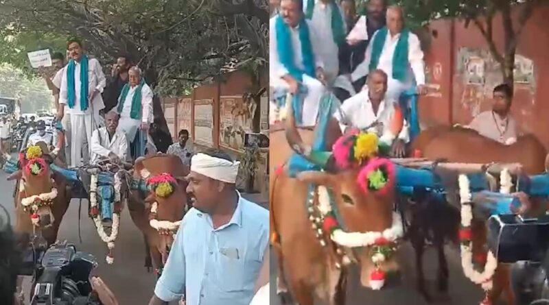 ఎండ్లబండిపై అసెంబ్లీకి.. బీజేపీ వినూత్న నిరసన