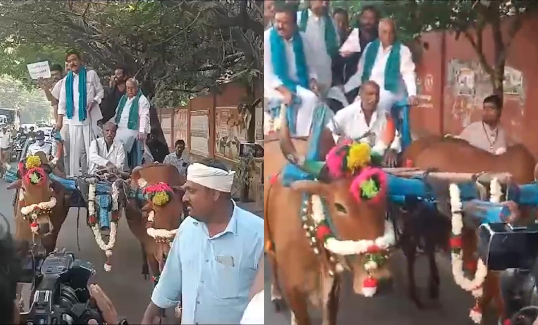 ఎండ్లబండిపై అసెంబ్లీకి.. బీజేపీ వినూత్న నిరసన
