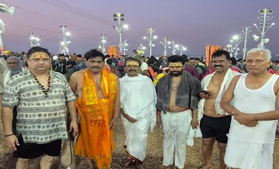 మల్కాజిగిరి బీజేపీ ఎంపీ ఈటల రాజేందర్ ఇవాళ తెల్లవారుజామున ప్రయాగ్ రాజ్ లోని కుంభమేళాలో పవిత్ర స్నానం చేశారు. జహీరాబాద్ మాజీ ఎంపీ బీబీ పాటిల్ తో పాటు మరి కొంత మందితో కలిసి నిన్న యూపీ వెళ్లిన ఈటల రాత్రి అక్కడే బస చేశారు. ప్రజాప్రతినిధులకు ప్రత్యేక ప్రొటోకాల్ ఉన్నప్ప టికీ.. ఈటల సామాన్యుడిలా దాదాపు 10 కిలో మీటర్లు ప్రజలతో కాలినడకన త్రివేణి సంగమానికి చేరుకొని పవిత్ర స్నానం ఆచరించారు. అనంతరం స్థానిక పూజారులు ప్రత్యేక పూజలు చేయించి తీర్థ ప్రసాదాలు అందించారు. ఈ సందర్భంగా ఆయన మాట్లాడుతూ ..భారతీయ సంస్కృతి, సంప్రదాయాలతోపాటు సనాతన ధర్మం, ప్రజల విశ్వాసాన్ని గౌరవించాలని అన్నారు. ఇందుకు సంబంధించిన వీడియోను ఆయన అభిమానులు సోషల్ మీడియాలో పోస్ట్ చేశారు. వీడియోలో ఎంపీ ఈటల ప్రజలతోపాటు నడుచుకుంటూ వెళ్లడం కనిపించింది.