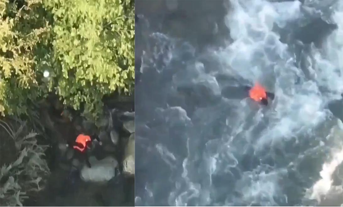 ఉగ్రవాదులకు సహాయం.. నదిలోకి దూకిన వ్యక్తి..