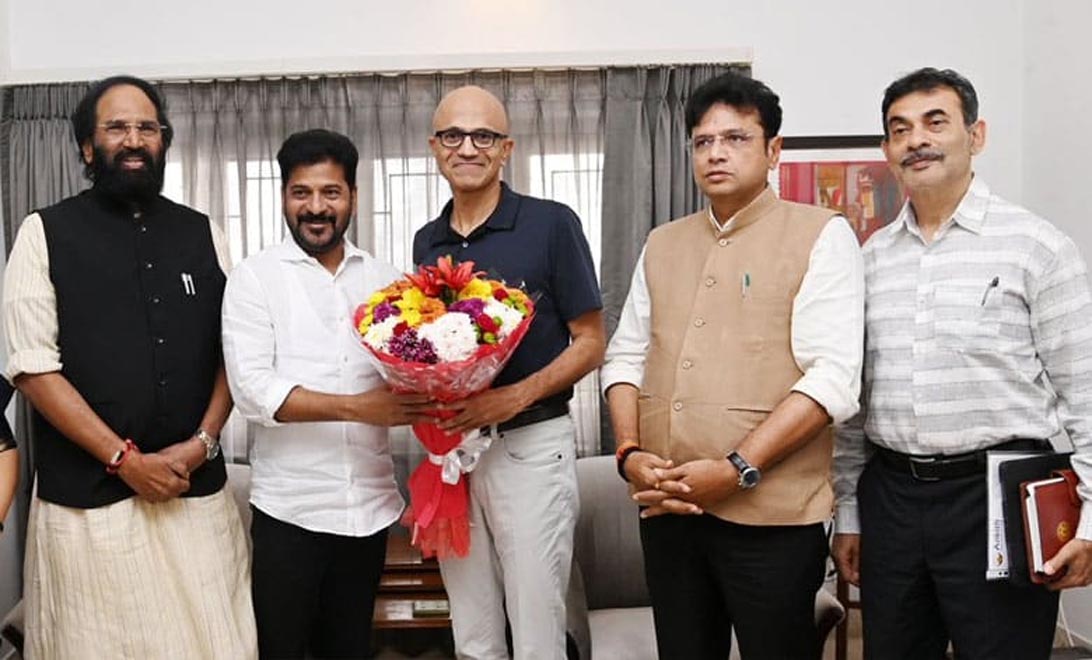 మైక్రోసాఫ్ట్ సీఈవో సత్య నాదెళ్లతో సీఎం రేవంత్ రెడ్డి భేటీ అయ్యారు. మంత్రులు ఉత్తమ్ కుమార్ రెడ్డి, శ్రీధర్ బాబు, సీఎస్ శాంతికుమారితో కలిసి బంజారాహిల్స్ లోని సత్య నాదెళ్ల నివాసానికి ప్రత్యేకంగా వెళ్లి సమావేశమయ్యారు. ప్రధానంగా స్కిల్ యూనివర్సిటీ, ఏఐ క్లౌడింగ్ కంప్యూటింగ్ గురించి ఆయనతో చర్చిస్తున్నట్లు సమాచారం. ఫ్యూచర్ సిటీ, ఏఐ సిటీల ఏర్పాటు, రాష్ట్ర ప్రభుత్వ లక్ష్యాలను సీఎం వివరించారని తెలుస్తోంది. మరోవైపు రాష్ట్రంలో మొత్తం 6 డేటా సెంటర్లను కంపెనీ ఏర్పాటు చేయనున్నట్లు తెలుస్తోంది.