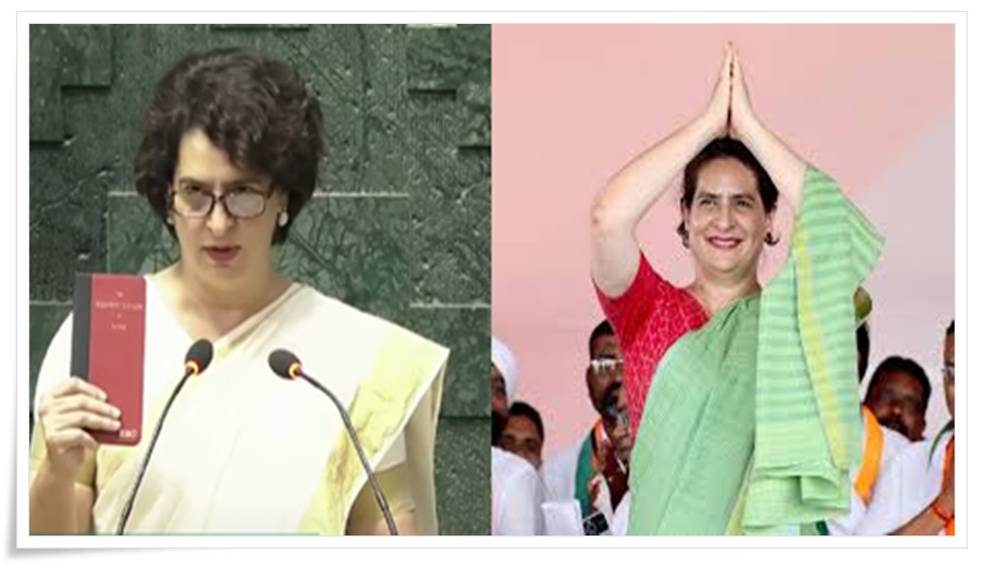 తొలి ప్రయత్నంలోనే వయనాడ్ నుండి 4 లక్షలకు పైగా భారీ ఓట్ల తేడాతో గెలుపొందిన ప్రియాంక గాంధీ నేడు లోక్సభలో ప్రమాణస్వీకారం చేశారు. తల్లి సోనియా గాంధీతో కలిసి పార్లమెంట్లో అడుగు పెట్టారు ప్రియాంక. ఒకే కుటుంబానికి చెందిన సోనియా గాంధీ, రాహుల్ గాంధీ, ప్రియాంక గాంధీ ముగ్గురూ కాంగ్రెస్ ఎంపీలుగా ఉండడం విశేషం. సోనియా గాంధీ రాజ్యసభ నుండి ఎంపీగా ఉండగా, రాహుల్, ప్రియాంకలు లోక్సభ నుండి ఎంపీలుగా ఉన్నారు. ముమ్మారులా ఆమె నానమ్మ, మాజీ ప్రధాని దివంగత ఇందిరాగాంధీని తలపించే తలకట్టు, చేనేత చీరతో సభ్యులను ఆకట్టుకున్నారు.