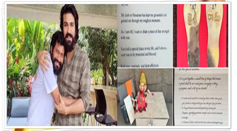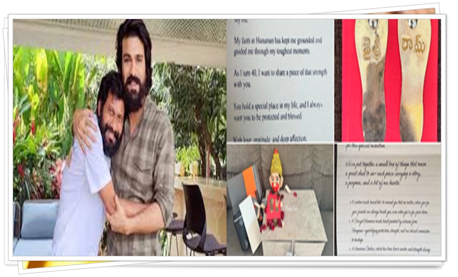 గ్లోబల్ స్టార్ రామ్చరణ్ కొత్త చిత్రానికి దర్శకుడు బుచ్చిబాబు దర్శకత్వం వహిస్తున్న సంగతి తెలిసిందే. శ్రీరామ నవమి పండుగ రాబోతున్న సందర్భంగా దర్శకుడు బుచ్చిబాబుకు రామ్చరణ్ దంపతులు ప్రత్యేక బహుమతి పంపారు. ఈ బహుమతి తనకెంతో ప్రత్యేకమని బుచ్చిబాబు ఎక్స్ వేదికగా ఓ పోస్ట్ పెట్టారు. ఇటీవల రామ్చరణ్ 40వ పుట్టినరోజు వేడుకలు ఘనంగా జరిగాయి. పుట్టినరోజు సందర్భంగా దర్శకుడు బుచ్చిబాబుకు చరణ్ దంపతులు హనుమాన్ చాలీసా పుస్తకాన్ని, హనుమంతుడి ప్రతిమను గిఫ్ట్గా పంపారు. ‘నా మనసులో నీకెప్పుడూ ప్రత్యేకమైన స్థానం ఉంటుంది. ఆ హనుమంతుడి ఆశీస్సులు నీపై ఎల్లప్పుడూ ఉండాలని కోరుకుంటున్నాను’ అని రాసి ఉన్న నోట్ కూడా ఉంది. వాటితో పాటు శ్రీరాముని పాదుకలను కూడా పంపారు. ఆ ఫొటోలను పంచుకున్న బుచ్చిబాబు ఈ బహుమతి మీ ప్రేమను తెలియజేస్తుందంటూ రామ్ చరణ్, ఉపాసనను ట్యాగ్ చేస్తూ పోస్ట్పెట్టారు. ఈ అమూల్యమైన బహుమతినిచ్చినందుకు వారిద్దరికీ కృతజ్ఞతలు తెలిపారు.