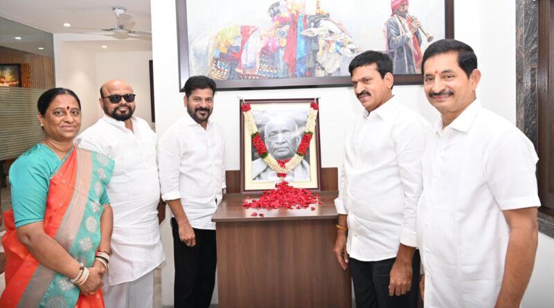 భారత దేశ తొలి ఉప ప్రధాని, ఉక్కు మనిషి సర్ధార్ వల్లభాయ్ పటేల్ వర్ధంతిని సీఎం రేవంత్ రెడ్డి నివాసంలో ఘనంగా నిర్వహించారు.ఈ సందర్భంగా జూబ్లీహిల్స్ లో ఆ మహనీయుడి చిత్రపటానికి పుష్పాంజలి ఘటించారు. దేశంలో ఉన్న 108 సంస్థానాలను విలీనం చేసి జాతి మొత్తాన్ని ఏకతాటిపైకి తీసుకొచ్చిన ఏకీకృత శక్తి పటేల్ అన్నారు.స్వాతంత్య్రం సాధించినప్పటికీ హైద్రాబాద్ లాంటి సంస్థానాల సంలీనం అపరీష్కృతంగా ఉండేదని,కానీ పటేల్ చొరవతో సంస్థానాలన్నీ విలీనం అయ్యాయని గుర్తు చేశారు. నివాళులు అర్పించిన వారిలో మంత్రులు పొంగులేటి శ్రీనివాస్ రెడ్డి , కొండా సురేఖ , సీఎం సలహాదారు వేం నరేందర్ రెడ్డి ఉన్నారు.