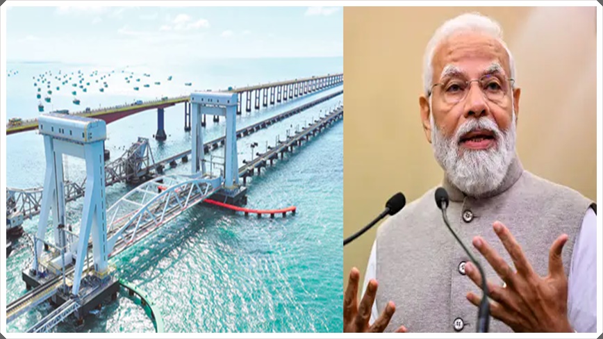 తమిళనాడులోని రామనాథపురం జిల్లాలో నూతనంగా దేశంలోనే మొట్ట మొదటి వర్టికల్ విఫ్ట్ సీ బ్రిడ్జ్ ప్రారంభించనున్నారు ప్రధాని మోది. రూ. 535 కోట్లతో అధునాతన సాంకేతిక విధానంతో నూతనంగా నిర్మించిన వంతెనను ప్రధాని మోదీ శ్రీరామనవమి సందర్భంగా పాంబన్ నుండి రిమోట్ పద్దతిలో ప్రారంభించనున్నారు. అనంతరం ప్రత్యేక రైలు ఈ వంతెన ద్వారా రామేశ్వరం నుండి తాంబరం చేరుకుంటుంది. కార్యక్రమం అనంతరం బహిరంగ సమావేశంలో పాల్గొని రూ.8,300 కోట్ల విలువైన నేషనల్ హైవే ప్రాజెక్టులకు శంకుస్థాపన చేయనున్నారు. అనంతరం ప్రధాని రామేశ్వరం ఆలయాన్ని సందర్శించి జ్యోతిర్లింగాల వద్ద పూజలు నిర్వహిస్తారు.