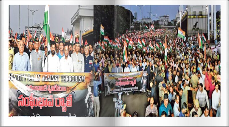 ఆపరేషన్ సింధూర్ వెనుక 140 కోట్ల మంది భారతీయులున్నారని, ఉగ్రవాదుల పీచమణిచే వరకూ ఇది కొనసాగుతుందని తెలంగాణ ముఖ్యమంత్రి రేవంత్ రెడ్డి పేర్కొన్నారు. దేశ భద్రత విషయంలో ఎలాంటి రాజీ పడేది లేదన్నారు. ‘దేశం వైపు కన్నెత్తి చూస్తే మీకు నూకలు చెల్లినట్లే’ అంటూ మండిపడ్డారు. ఇలాంటి సందర్భాలలో రాజకీయాలకు తావు లేకుండా పార్టీలు, జెండాలు, ఎజెండాలకు అతీతంగా దేశప్రజలంతా ఏకమవుతామని స్పష్టం చేశారు. ఉగ్రవాదానికి వ్యతిరేకంగా జరిగిన సంఘీభావ ర్యాలీలో జాతీయజెండాతో ఆయన పాల్గొన్నారు. పోలీసులు, వేలమంది ప్రజలు, మాజీ సైనికులు ఈ కార్యక్రమంలో పాల్గొన్నారు. డాక్టర్ బీఆర్ అంబేద్కర్ సచివాలయం వద్ద గురువారం సాయంత్రం ముఖ్యమంత్రి, ఇతర మంత్రులు, అధికారులు సచివాలయం నుండి నెక్లెస్ రోడ్ రోటరీ వరకూ ఈ సంఘీ భావ ర్యాలీ నిర్వహించారు. ఉగ్రవాదుల దాడిలో మృతి చెందిన వారి చిత్రపటాలకు నివాళులర్పించి, మౌనం పాటించారు.