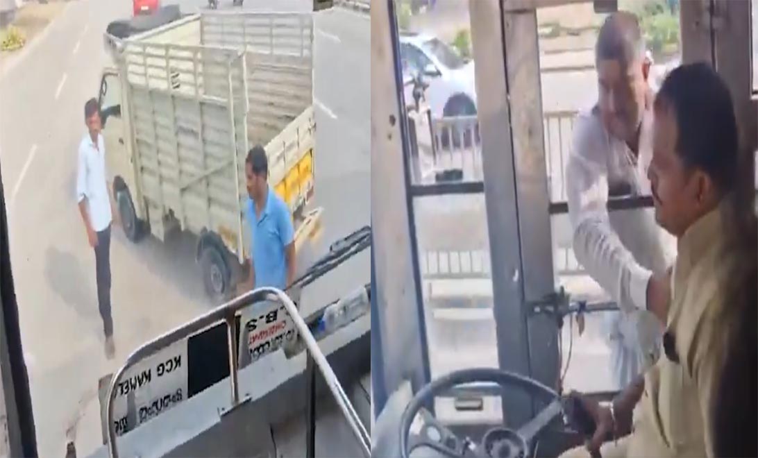 ఇదేం పని.. రన్నింగ్ బస్సులో ఆటో డ్రైవర్ దాడి..