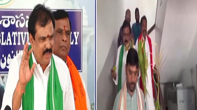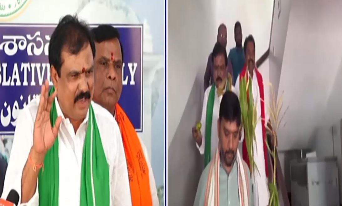 బీజేపీ ఎమ్మెల్యేలు మొక్కజొన్న కంకులు, మామిడి కాయలతో అసెంబ్లీకి వచ్చారు. అకాల వర్షంతో నష్టపోయిన రైతులను ప్రభుత్వం ఆదుకోవాలని డిమాండ్ చేశారు. అయితే మార్షల్స్ వారిని శాసనసభ ఆవరణలోనే అడ్డుకున్నారు. కంకులు, మామిడి కాయలు సభలోకి అనుమతిలేదని స్పష్టంచేశారు. దీంతో బీజేపీ ఎమ్మెల్యేలకు, మార్షల్స్ కు మధ్య వాగ్వాదం చోటు చేసుకుంది. మరోవైపు రాష్ట్రంలో ఇటీవల కురిసిన అకాల వానలతో జరిగిన పంట నష్టంపై అసెంబ్లీలో వాడివేడి చర్చ జరిగింది. నష్టపోయిన రైతులకు ఆదుకోవాలని బీజేపీ ఎమ్మెల్యేలు ప్రభుత్వాన్ని కోరారు. ఎకరాకు 30 వేల రూపాయల చొప్పున ఇవ్వాలని వారు డిమాండ్ చేశారు.