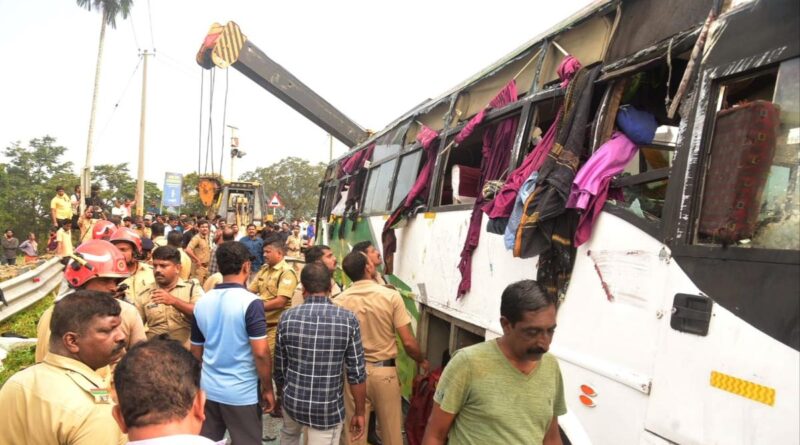 శబరిమల యాత్రలో ఉన్న తెలుగువారి బస్సు బోల్తాపడింది.ఈ ప్రమాదంలో బస్సు డ్రైవర్ అక్కడికక్కడే దుర్మరణం పాలవగా,మరో 8 మంది భక్తులు తీవ్రంగా గాయపడ్డారు.పంబకి 15 కిమీ దూరంలో ఈ దుర్ఘటన చోటు చేసుకుంది.వీరంతా హైద్రాబాద్లోని మాదన్నపేట కి చెందిన వారిగా గుర్తించారు.గాయపడిన వారిని కొట్తాయం మెడికల్ కళాశాల ఆసుపత్రికి తరలించారు.మరికొంత మంది పరిస్థితి విషమంగా ఉన్నట్లు వైద్యులు తెలిపారు. ప్రమాద సమయంలో బస్సులో 22 మంది ప్రయాణిస్తున్నారు.ప్రమాదానికి గల కారణాలు తెలియాల్సి ఉంది.