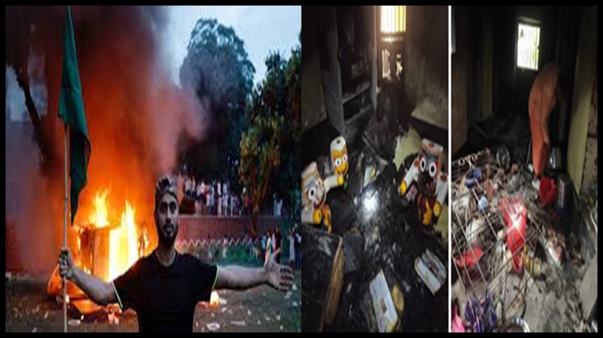 బంగ్లాదేశ్ అంతర్యుద్ధంతో సతమతమవుతోంది. మత విద్వేషాలు రెచ్చగొట్టేలా హిందూ దేవాలయాలపై దాడులు తీవ్రం చేస్తున్నారు. తాజాగా మైమెన్ సింగ్, దినాజ్ పూర్ అనే ప్రాంతాలలో 3 హిందూ ఆలయాలలోని 8 విగ్రహాలను ధ్వంసం చేశారు. గత రెండు రోజుల్లో మైమెన్ సింగ్లోని రెండు ఆలయాలలో 3 మూలవిరాట్టులను ధ్వంసం చేశారని పోలీసులు తెలిపారు. అయితే ఈ ఘటనలపై ఎలాంటి కేసులు నమోదు చేయలేదన్నారు. పొలాష్ ఖండ్ అనే ప్రాంతంలో కాళీ మందిరంపై దాడి ఘటనలో మాత్రం అలాలుద్దీన్ అనే వ్యక్తిని అరెస్టు చేసినట్లు తెలిపారు. హిందువులపై దాడుల సంఘటనలలో ప్రభుత్వ తీరును వ్యతిరేఖిస్తూ పలు దేశాలలోని హిందూ సంఘాలు నిరసనలు వ్యక్తం చేస్తున్నాయి. బంగ్లాదేశ్లో మైనారిటీలుగా ఉన్న హిందువుల హక్కులను కాపాడవలసిన ప్రభుత్వం అలసత్వం వహిస్తోందని మండిపడుతున్నారు.