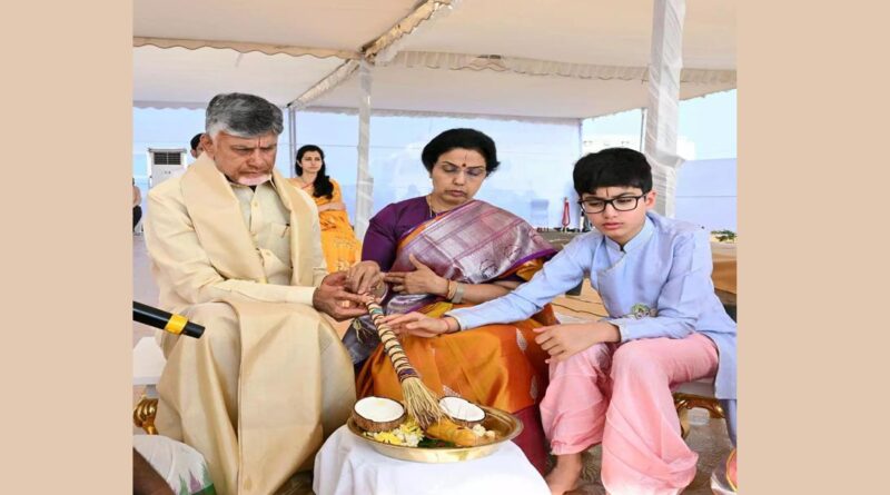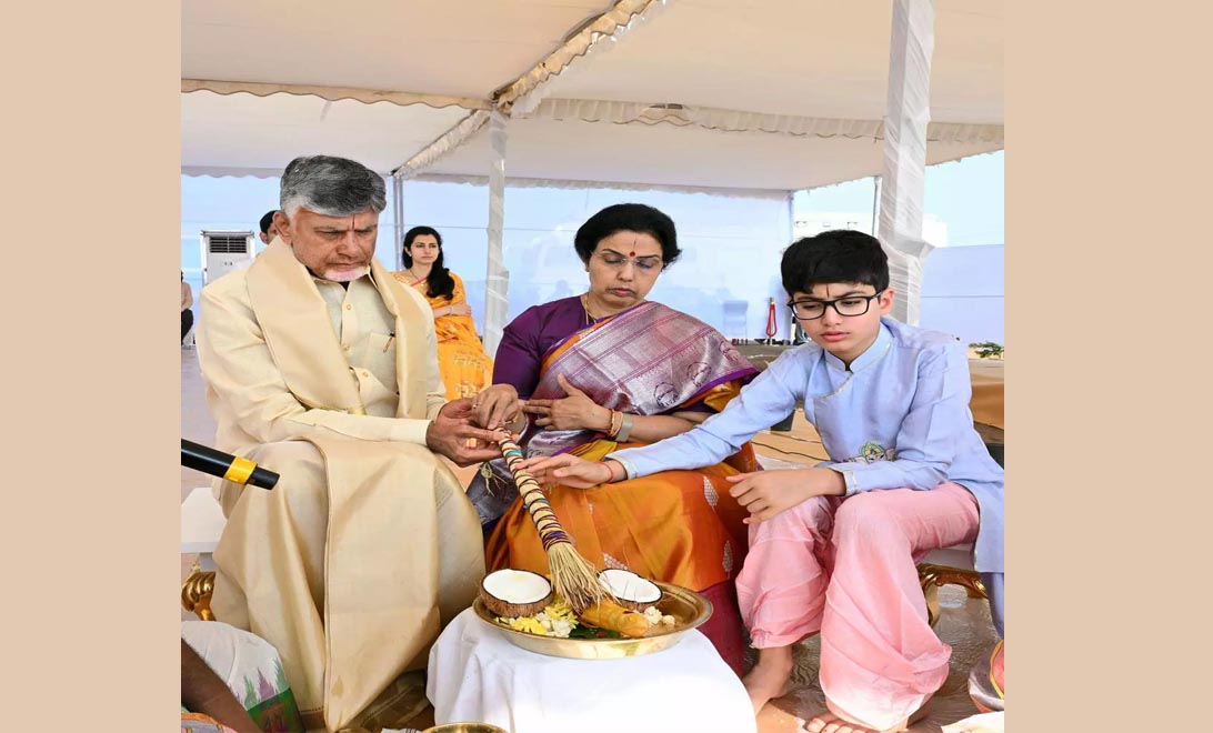 ఎట్టకేలకు రాజధాని అమరావతిలో ఏపీ సీఎం చంద్రబాబు సొంతింటి నిర్మాణానికి శ్రీకారం చుట్టారు. ఇవాళ ఉదయాన్నే ఇంటి నిర్మాణ పనులకు సీఎం కుటుంబసభ్యులతో కలిసి శంకుస్థాపన చేశారు. గతేడాది డిసెంబరులో వెలగపూడి రెవెన్యూ పరిధిలో 5 ఎకరాలు కొనుగోలు చేశారు. ఇటీవలే ప్లాట్ రిజిస్ట్రేషన్ ప్రక్రియ పూర్తయింది. 1,455 చదరపు గజాల విస్తీర్ణంలో జి ప్లస్ 1లో ఇంటి నిర్మాణం చేపట్టనున్నారు. ఇంటి నిర్మాణ బాధ్యత ఎస్ఆర్ఆర్ కన్స్ట్రక్షన్ కంపెనీ తీసుకుంది. ఏడాదిలోపు పూర్తి చేసి గృహప్రవేశం చేయాలని ముఖ్యమంత్రి చంద్రబాబు భావిస్తున్నారు.