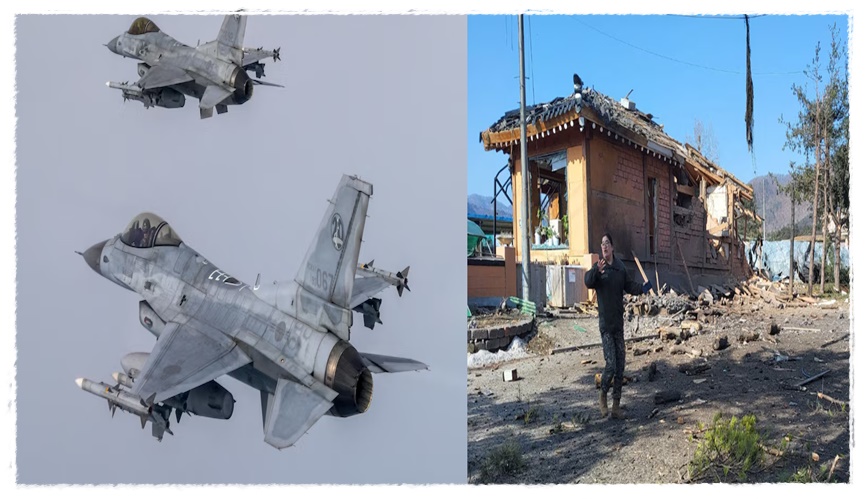దక్షిణ కొరియా మిలటరీ విన్యాసాలలో అపశృతి చోటు చేసుకుంది. వైమానిక దళం చేస్తున్న విన్యాసాలలో భాగంగా ప్రమాదవశాత్తూ 8 బాంబులను సామాన్య పౌరులపై ప్రయోగించారు. కేఎఫ్-16 అనే యుద్ధవిమానం గురువారం ఉదయం నిర్దేశించిన ఫైరింగ్ రేంజ్లో కాకుండా వేరే ప్రదేశంలో ఎంకే-82 బాంబులను జారవిడిచింది. ఈ ఘటనలో 8 మంది గాయపడినట్లు సమాచారం. ఒక నివాసం కూడా పాక్షికంగా దెబ్బతింది. తమ నివాస ప్రదేశాలకు దగ్గరలో మిలటరీ విన్యాసాలు, ట్రైనింగ్ గ్రౌండ్స్ ఉండడంతో అక్కడి పౌరులు భయభ్రాంతులవుతున్నారు. చాలాకాలంగా వాటిని అక్కడ నుండి తరలించాలని డిమాండ్ చేస్తున్నారు. ఈ ఘటనపై విచారం వ్యక్తం చేసిన అధికారులు ఈ ఘటనపై విచారణ కమిటీ వేస్తున్నామని, ప్రమాదం జరగడానికి కారణాలు అన్వేషిస్తున్నామని తెలియజేశారు. గాయపడిన వారికి సహాయం అందిస్తున్నామని అండగా ఉంటామని తెలియజేశారు.