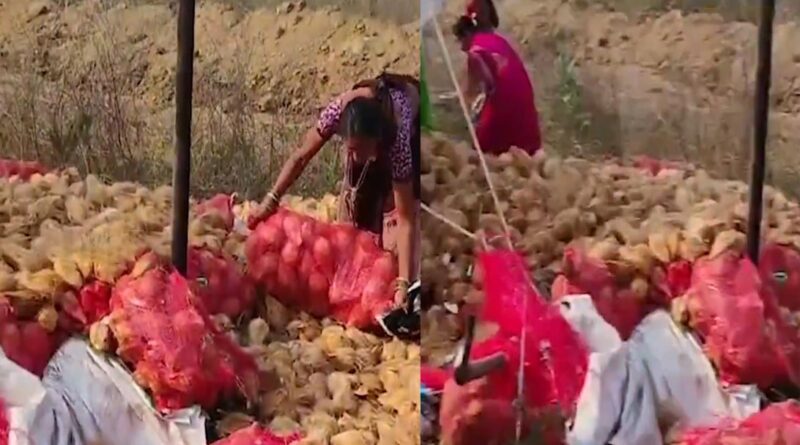 కొబ్బరికాయల వాహనం బోల్తా.. సంచుల్లో ఎత్తుకెళ్లిన స్థానికులు
