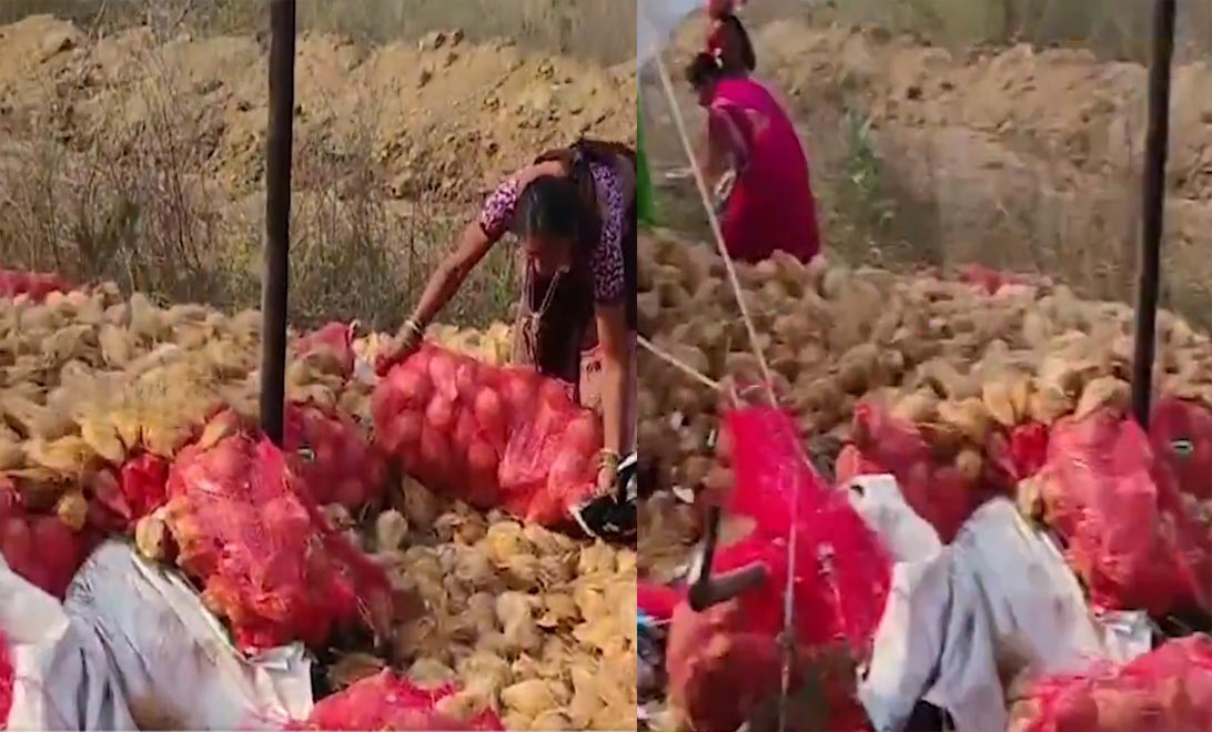 కొబ్బరికాయల వాహనం బోల్తా.. సంచుల్లో ఎత్తుకెళ్లిన స్థానికులు