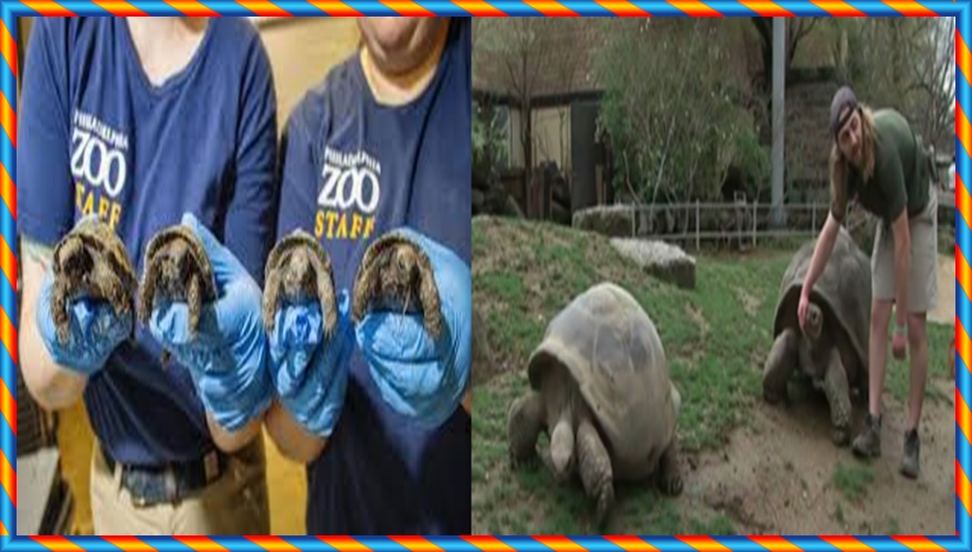 నూరేళ్ల వయసులో ఈ జంట తాబేళ్లు నలుగురు పిల్లలకి జన్మనిచ్చాయి. అంతేకాదు, ఇవి తొలిసారిగా తల్లిదండ్రులవడం విశేషం. అమెరికాలోని ఫిలడెల్ఫియాలో జూలో ఉన్న మోమీ, అబ్రజో అనే తాబేళ్ల జంట అత్యంత వృద్దజంట. ఇవి వేగంగా అంతరించిపోతున్న వెస్టర్న్ శాంటా క్రజ్ గాలాపగోస్ అనే జాతికి చెందిన తాబేళ్లు. ఇవి తాబేళ్ల జాతిలో అతి పెద్ద తాబేలు కూడా. ఇవి అరుదైన జాతి కావడంతో ప్రత్యేక శ్రద్ధతో వీటిని సాకుతున్నారు జూ సిబ్బంది. ఇవి 100 నుండి 200 ఏళ్లు బతుకుతాయి. మోమీ తాబేలు 2024లో 16 గుడ్లు పెట్టగా, వాటిని వివిధ ఉష్ణోగ్రతలలో భద్రపరిచారు. వాటి నుండి ఆడ, మగ తాబేలు పిల్లలను పొదగడానికి ప్రయత్నిస్తున్నారు. ఇటీవల వాటిలో 4 గుడ్ల నుండి 4 ఆడ తాబేలు పిల్లలు బయటకొచ్చాయి. ఇవి 80 గ్రాముల వరకూ బరువు ఉన్నాయని, ఆరోగ్యంగా ఉన్నాయని సిబ్బంది చెప్తున్నారు. వీటిని చూసేందుకు ఈ ఏప్రిల్ చివరివారం నుండి సందర్శకులను అనుమతిస్తారు.