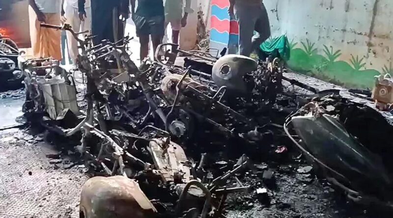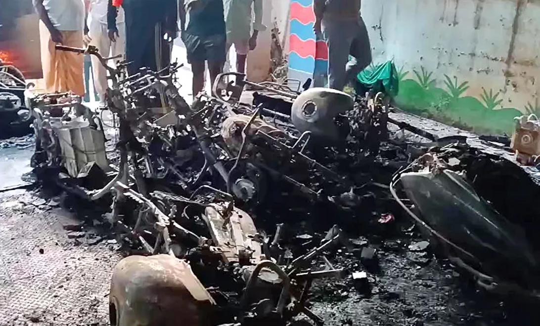 పేలిన ఎలక్ట్రిక్ బైక్.. ఎనిమిది వాహనాలు దగ్ధం