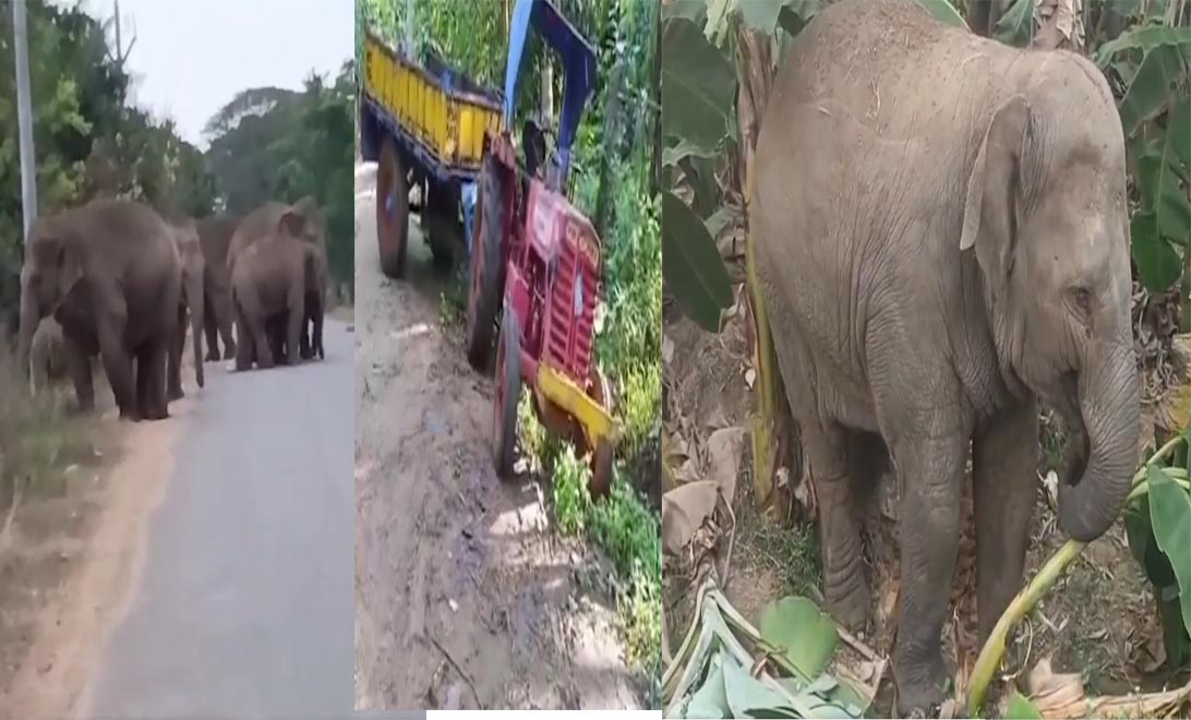 ట్రాక్టర్ తో పాటు పంటలను ధ్వంసం చేసిన ఏనుగులు