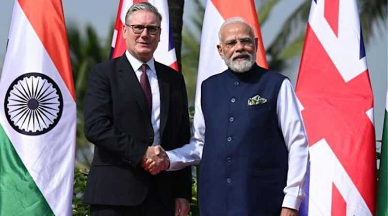 బ్రిటన్ ప్రధాని కీర్ స్టార్మర్ ఇటీవల భారతదేశాన్ని సందర్శించారు. ఈ సందర్శనలో ఆయన భారత్ 2028 నాటికి ప్రపంచంలో మూడో అతిపెద్ద ఆర్థికశక్తిగా ఎదగనున్నదని పేర్కొన్నారు. ఆయన గురువారం ప్రధాని నరేంద్రమోదీతో భేటీ అయ్యారు. ముంబయిలోని రాజ్ భవన్ లో ఇరు దేశాధినేతలు సమావేశం జరిపారు. అనంతరం సంయుక్త మీడియా సమావేశంలో పాల్గొన్నారు. ఈ సందర్భంగా స్టార్మర్ మాట్లాడుతూ.. భారత ఆర్థిక వ్యవస్థ ఎదుగుదలను ప్రశంసించారు. ఈ ప్రయాణంలో తామూ భాగస్వామిగా ఉండాలని ఆశిస్తున్నామన్నారు.