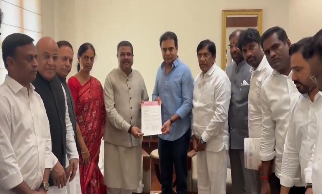 ఢిల్లీ పర్యటనలో భాగంగ బీఆర్ఎస్ వర్కింగ్ ప్రెసిడెంట్ కేటీఆర్ కేంద్రమంత్రితో భేటీ అయ్యారు. యూజీసీ నిబంధనల పై కేంద్ర విద్యా శాఖ మంత్రి ధర్మేంద్ర ప్రధాన్ కలిసి కేటీఆర్ వినతి పత్రం ఇచ్చారు. కొత్త నిబంధనల వల్ల మెడికల్ సీట్ల విషయంలో తెలంగాణకు అన్యాయం జరుగుతుందని.. నిబంధనలు సవరించి తెలంగాణ వైద్య విద్యార్థులకు న్యాయం చేయాలని విజ్ఞప్తి చేశారు. కేటీఆర్ తో పాటు మాజీ మంత్రి సబితా ఇంద్రారెడ్డి, మాజీ స్పీకర్ సురేశ్ రెడ్డి, మాజీ ఎంపీ వినోద్; మాజీ ఎమ్మెల్యే బాల్కసుమన్ బీఆర్ఎస్ పార్టీ నాయకులు కూడా ఉన్నారు.