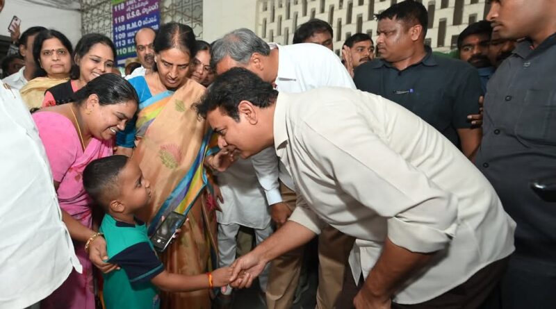 ఆశావర్కర్లపై దాడి అనంతరం ఉస్మానియా ఆసుపత్రికి పరిశీలన నిమిత్తం వచ్చిన మాజీ మంత్రి కేటిఆర్కి అనూహ్య సంఘటన ఎదురైంది.బాధితులకు భరోసానిచ్చి బయటకు వస్తుండగా ఓ బాలుడు కేటిఆర్కి ఎదురూ వచ్చి ఆప్యాయంగా చూస్తూ ఉండిపోయాడు.వెంటనే ఆ బాలుణ్ని టచ్ చేస్తూ కిందకు వంగి మాట్లాడబోతుండగా ఇతకి …క్యాన్సర్ అని ఎక్కువ రోజులు బతికే అవకాశం లేదని ఆసుపత్రి వర్గాలు చెప్పాయి. దీంతో బాలుణ్ణి దగ్గరకు తీసుకుని అతనికి సెల్ఫీ స్టిల్ ఇచ్చి ఆలింగనం చేసుకున్నాడు.బాలుడు త్వరగా కోలుకోవాలని దేవుణ్ణి ప్రార్ధించారు.మెరుగైన వైద్యం అందించాలని సూచించాడు.