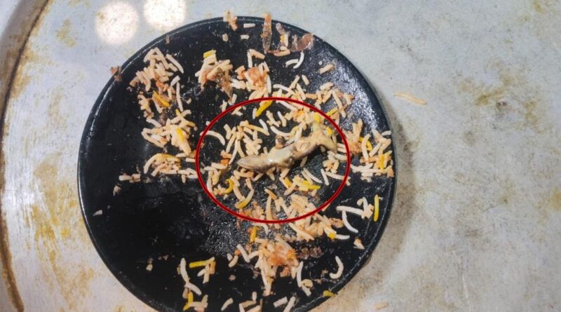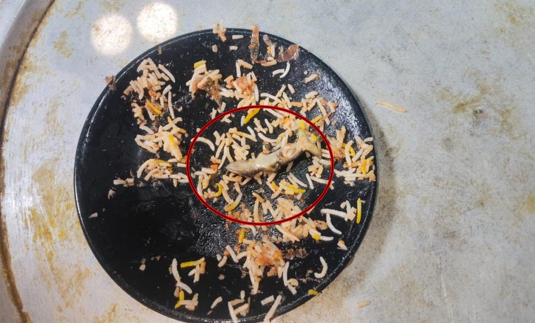 తెలంగాణలోని ఇబ్రహీంపట్నం మున్సిపాలిటీ సాగర్ రహదారిపై ఉన్న మెహఫిల్ ఫ్యామిలీ రెస్టారెంట్లో కస్టమర్ చికెన్ బిర్యానీ తింటుండగా బిర్యానీలో బల్లి ప్రత్యక్షమైంది. బల్లి రావడంతో ఒక్కసారిగా కస్టమర్ కంగుతిన్నాడు. ఇదేమిటని రెస్టారెంట్ యజమానిని నిలదీశాడు. అయితే.. రెస్టారెంట్ యజమాని మంచిగా ఫ్రై అయింది తిను అని చెప్పడంతో బాధితుడు ఆగ్రహానికి గురయ్యాడు. గుజ్జా కృష్ణ రెడ్డి షేరిగూడ పోలీసులకు ఫిర్యాదు చేశాడు బాధితుడు. దీంతో రంగంలోకి దిగిన పోలీసులు మేనేజర్ను పోలీస్ స్టేషన్కు తీసుకెళ్లారు.