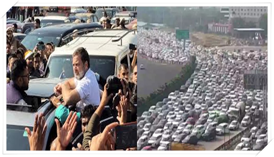 రాహుల్, ప్రియాంకల అడ్డగింత, భారీగా ట్రాఫిక్ జామ్