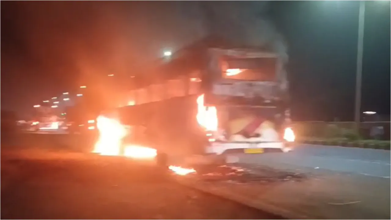 నడిరోడ్డుపై ఆర్టీసీ బస్సు దగ్దం