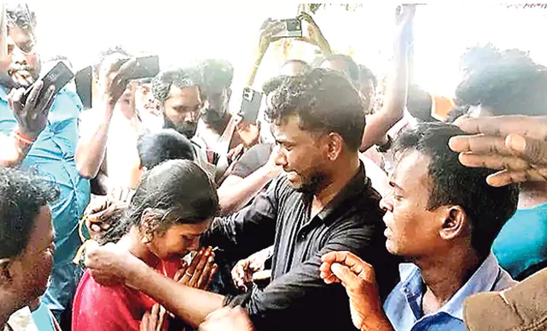 తండ్రి మృతదేహం ఎదుట కుమారుడు వివాహం చేసుకున్నాడు. ఈ ఘటన తమిళనాడులోని కడలూరు జిల్లాలో చోటు చేసుకుంది. తండ్రి కవణ్ణైలో సెల్వరాజ్ రైల్వే ఉద్యోగి. లా కళాశాలలో చదువుతున్న ఆయన రెండో కుమారుడు అప్పు, విరుధాచలం కౌంజియప్పర్ ప్రభుత్వ డీగ్రీ కళాశాలలో చదువుతున్న విద్యార్థిణి విజయశాంతితో గత మూడు సంవత్సరాలుగా ప్రేమించుకుంటున్నారు. ఇరు కుటుంబాలతో అనుమతితో వివాహం చేసుకోవాలని వారు నిర్ణయించుకున్నారు. ఈ క్రమంలో అప్పు తండ్రి సెల్వరాజ్ అనారోగ్యంతో బుధవారం రాత్రి చనిపోయారు. అంతిమయాత్రకు ముందే ఆశీస్సులు పొందాలనే ఉద్దేశ్యంతో ప్రియురాలిని ఒప్పించి తండ్రి మృత దేహం ఎదుట ఆమెకు అప్పు తాళి కట్టారు. పుట్టెడు దుఃఖంలోను అప్పు తల్లి, బంధువులు, గ్రామస్థులు వారిని ఆశీర్వదించారు. అయితే.. అమ్మాయి తరఫువారు పాల్గొనలేదు.