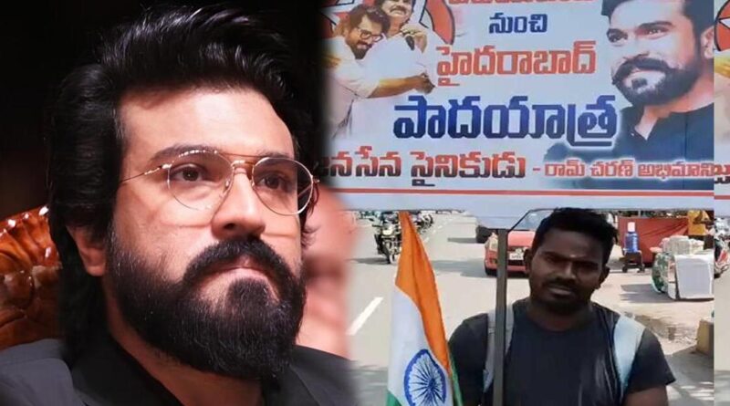 తన అభిమాన నటుడు రాంచరణ్ ను ప్రత్యక్షంగా కలిసేందుకు ఓ అభిమాని పాదయాత్ర చేపట్టాడు. శ్రీకాకుళం జిల్లా రాజాంకి చెందిన శేఖర్ విజయవాడ కు చేరుకుని అక్కడి నుంచి హైదరాబాద్ కు బయలు దేరాడు. దాదాపు 8 రోజులుగా జాతీయ జెండా, ప్లకార్డ్ తో పాదయాత్ర చేస్తున్నాడు. ప్రస్తుతం ఈ వీడియో సోషల్ మీడియాలో వైరల్ గా మారింది.