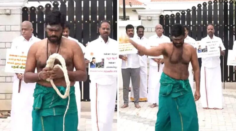 తమిళనాడు బీజేపీ రాష్ట్ర అధ్యక్షుడు కె.అన్నామలై తనను తాను కొరడాతో కొట్టుకున్నారు. కోయంబత్తూర్ లోని ఆయన నివాసంలో మీడియా ఎదుటనే ఎనిమిది కొరడా దెబ్బలతో తన శరీరాన్ని గాయపరుచుకున్నారు. ఆయన కొరడా ఝుళిపించుకోవడంతో జర్నలిస్టులు, కెమెరామెన్లు విస్తుపోయారు. అసలు ఎందుకు ఆయన ఇలా చేశారంటే.. ఇటీవల అన్నా యునివర్సిటీలో విద్యార్థినులపై లైంగిక వేధింపుల ఘటనపై ప్రభుత్వ తీరుకు నిరసనగా ఆయన ఇలా చేశారు. ఆకుపచ్చ లుంగి ధరించి, అన్నామలై ఒక పొడవాటి, తెల్లటి కొరడాతో బహిరంగంగా కొరడాలతో కొట్టుకున్నాడు. దీనికి సంబంధించిన వీడియో సోషల్ మీడియాలో వైరల్ అవుతోంది. మరోవైపు డీఎంకేను దించే వరకు తాను చెప్పులు వేసుకోనంటూ అన్నామలై నిన్న శపథం చేసిన విషయం తెలిసిందే. . అన్నా యూనివర్సిటీ క్యాంపస్ లో విద్యార్థినిపై లైంగిక వేధింపుల ఘటన విషయంలో అన్నామలై తీవ్ర ఆగ్రహం వ్యక్తం చేశారు. “రాష్ట్రంలో పిల్లలు, స్త్రీలకు భద్రత లేదు. యువతిపై లైంగిక వేధింపులకు పాల్పడినవాడు డీఎంకే వ్యక్తే. ఈ డీఎంకేను అధికారం నుంచి దించేవరకూ చెప్పులు కూడా వేసుకోను. రేపటి నుంచి 48 రోజుల పాటు నిరాహార దీక్ష చేయనున్నాను” అని స్పష్టం చేశారు.