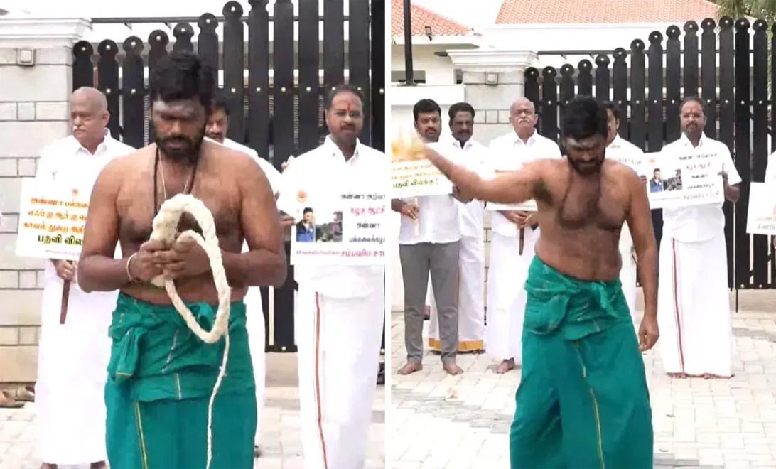 తమిళనాడు బీజేపీ రాష్ట్ర అధ్యక్షుడు కె.అన్నామలై తనను తాను కొరడాతో కొట్టుకున్నారు. కోయంబత్తూర్ లోని ఆయన నివాసంలో మీడియా ఎదుటనే ఎనిమిది కొరడా దెబ్బలతో తన శరీరాన్ని గాయపరుచుకున్నారు. ఆయన కొరడా ఝుళిపించుకోవడంతో జర్నలిస్టులు, కెమెరామెన్లు విస్తుపోయారు. అసలు ఎందుకు ఆయన ఇలా చేశారంటే.. ఇటీవల అన్నా యునివర్సిటీలో విద్యార్థినులపై లైంగిక వేధింపుల ఘటనపై ప్రభుత్వ తీరుకు నిరసనగా ఆయన ఇలా చేశారు. ఆకుపచ్చ లుంగి ధరించి, అన్నామలై ఒక పొడవాటి, తెల్లటి కొరడాతో బహిరంగంగా కొరడాలతో కొట్టుకున్నాడు. దీనికి సంబంధించిన వీడియో సోషల్ మీడియాలో వైరల్ అవుతోంది. మరోవైపు డీఎంకేను దించే వరకు తాను చెప్పులు వేసుకోనంటూ అన్నామలై నిన్న శపథం చేసిన విషయం తెలిసిందే. . అన్నా యూనివర్సిటీ క్యాంపస్ లో విద్యార్థినిపై లైంగిక వేధింపుల ఘటన విషయంలో అన్నామలై తీవ్ర ఆగ్రహం వ్యక్తం చేశారు. “రాష్ట్రంలో పిల్లలు, స్త్రీలకు భద్రత లేదు. యువతిపై లైంగిక వేధింపులకు పాల్పడినవాడు డీఎంకే వ్యక్తే. ఈ డీఎంకేను అధికారం నుంచి దించేవరకూ చెప్పులు కూడా వేసుకోను. రేపటి నుంచి 48 రోజుల పాటు నిరాహార దీక్ష చేయనున్నాను” అని స్పష్టం చేశారు.