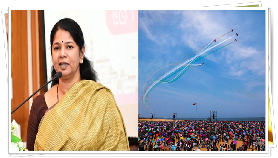 చెన్నైలో ఇండియన్ ఎయిర్ ఫోర్స్ షో తర్వాత హీట్ స్ట్రోక్ కారణంగా ఐదుగురు మరణించడం చాలా బాధాకరమని, అనవసరంగా అంతమందిని పోగేశారని, వారి చావులకు కారణమయ్యారన్నారు డీఎంకే ఎంపి కనిమొళి. 15 లక్షల మంది ప్రేక్షకులను ఒకచోట చేర్చి ప్రపంచ రికార్డు సృష్టించాలన్న లక్ష్యం, అమాయకుల మృతికి కారణమన్నారు. వైమానిక దళం 92వ వార్షికోత్సవాన్ని పురస్కరించుకుని ప్రపంచంలోని అతి పొడవైన బీచ్, మెరీనా బీచ్లో లిమ్కా బుక్ ఆఫ్ వరల్డ్ రికార్డ్ నెలకొల్పేందుకు ఈవెంట్ను ఎయిర్ ఫోర్స్ ప్లాన్ చేసింది. ఎండ వేడిమి ఉదయం 11 నుండి మధ్యాహ్నం 1 గంటల ఎక్కువగా ఉండటంతో కొందరు వేడి గాలులు తట్టుకోలేక ప్రాణాలు కోల్పోయారు. మెరీనా బీచ్ రహదారి వెంట ఉన్న ఎలివేటెడ్ MRTS రైల్వే స్టేషన్లు జనసద్రంగా మారాయి. రద్దీగా ఉండే రోడ్లపై 3-4 కిలోమీటర్లు నడవాల్సి రావడంతో ప్రమాదం జరిగింది.