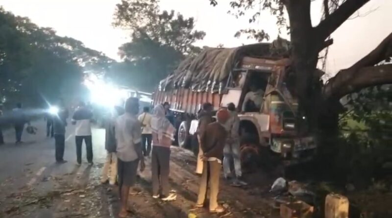 అదుపుతప్పి చెట్టును ఢీకొట్టిన లారీ