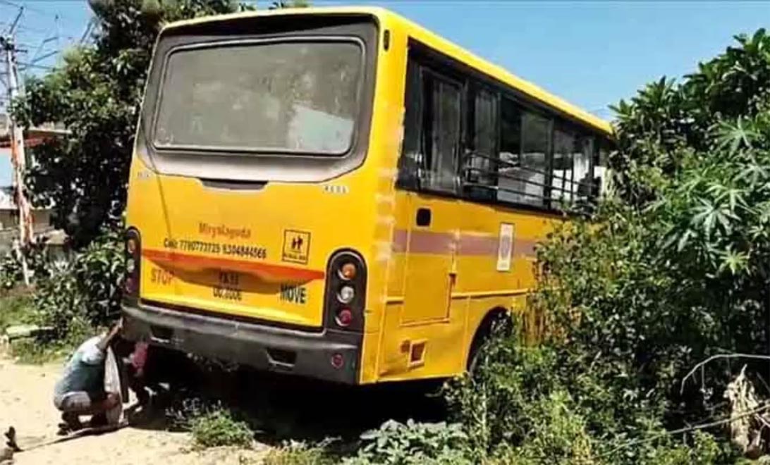 చెట్లలోకి దూసుకెళ్లిన స్కూల్ బస్సు..
