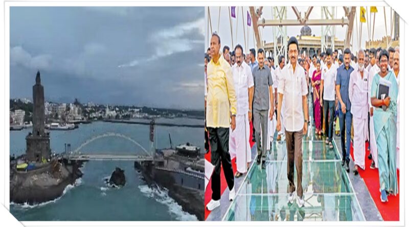 కన్యాకుమారిలోని వివేకానంద రాక్ వద్ద నిర్మించిన పారదర్శకమైన ఫైబర్ గ్లాస్ వంతెనను నేడు తమిళనాడు సీఎం స్టాలిన్ ప్రారంభించారు. దీనితో ఇకపై కన్యాకుమారి వెళ్లే టూరిస్టులు వివేకానంద మెమోరియల్ వద్దకు వెళ్లడానికి మరింత ఆసక్తి కనపరుస్తారు. ఈ వంతెన 133 అడుగుల తిరువళ్లువార్ విగ్రహాన్ని, వివేకానంద మెమోరియల్ను కలుపుతోంది. దీనికోసం తమిళనాడు ప్రభుత్వం రూ.37 కోట్లు ఖర్చు చేసింది. ఈ ప్రదేశం ఎంతో కాలంగా సందర్శకులను ఆకర్షిస్తోంది. ఈ ప్రదేశంలో సూర్యోదయ, సూర్యాస్తమయ సమయాలు చూడడం చాలా ఆసక్తికరంగా ఉంటుంది. సముద్రాన్ని కాళ్ల కింద నుండి చూస్తూ సముద్రపు గాలి వీస్తూండగా నడవడాన్ని ఆస్వాదించవచ్చు.