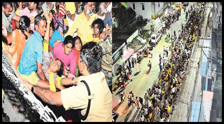 కలియుగ వైకుంఠం తిరుమల శ్రీవారిని వైకుంఠ ఏకాదశి పర్వదినాన దర్శనాలకు ఇచ్చే టోకెన్ల కోసం జనాలు పోటెత్తారు. లక్షలాది మంది జనాలు వచ్చి, టోకెన్ కేంద్రాల వద్ద తొక్కిసలాట జరగడంతో ఆరుగురు మృతి చెందారు. దాదాపు 50 మంది గాయపడ్డారు. అక్కడి కక్కడే నలుగురు మరణించగా, మరో ఇద్దరు రుయా ఆస్పత్రిలో చికిత్స పొందుతూ మృతి చెందారు. మృతుల్లో 4గురు మహిళలు కావడం విషాదం. ఈ నెల 10, 11,12 తేదీలకు సంబంధించిన దర్శనాల కోసం మొత్తం 1.20 లక్షల టోకెన్లు జారీ చేస్తామని ప్రకటించారు. తిరుపతిలో ఏర్పాటు చేసిన 8 కేంద్రాలలో స్లాటెడ్ సర్వదర్శనం టికెట్ల జారీ చేస్తారు. 9 గురువారం ఉదయం 5 గంటలకు చేయవలసిన టికెట్లు జారీ ప్రక్రియ ప్రారంభించాల్సి ఉండగా, బుధవారం రాత్రి 7 గంటలకే తమిళనాడు, కర్ణాటక రాష్ట్రాల నుండి భారీగా భక్తులు చేరుకున్నారు. ఒక్కసారిగా క్యూలైన్లలో ప్రవేశించడంతో భారీగా తొక్కిసలాట చోటు చేసుకుంది. ఈ ఘటనలో పలువురు గాయపడగా వారిని స్విమ్స్, రుయా ఆస్పత్రులకు తరలించారు. విషయం తెలిసిన తిరుపతి కలెక్టర్, టీటీడీ ఈవో, జేఈవో, ఎస్పీలు అక్కడికి చేరుకుని పరిస్థితి పర్యవేక్షిస్తున్నారు. నేడు ముఖ్యమంత్రి చంద్రబాబు నాయుడు తిరుపతి వచ్చి ఈ విషయంపై సమీక్షించనున్నారు.