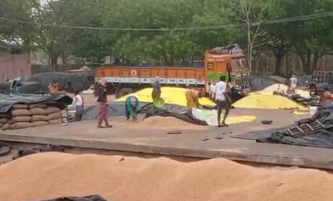 అకాల వర్షం.. కొనుగోలు కేంద్రాల్లో తడిసిన ధాన్యం