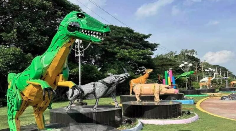 విజయవాడ : ఇనుము, ఆటోమొబైల్ స్పేర్పార్ట్స్, యంత్రాల తుక్కుతో తీర్చిదిద్దిన విభిన్న శిల్పాలతో విజువల్ వండర్ గా చూపరులను ఆకట్టుకుంటోంది విజయవాడ స్క్రాప్ పార్క్. చెత్త నుండి అద్భుత కళాఖండాలు జీవం పోసుకుని కళ్ల ముందు నిలబడినట్లు ఉన్న ఈ పార్క్ విజయవాడ నగరవాసులకూ, సందర్శకులకూ కొత్త ఆకర్షణగా నిలుస్తోంది. ఇక్కడ అడవి జింక, పక్షులు, జిరాఫీ, డైనోసార్, జింకలు, పందులు వంటి విభిన్న జంతువుల ప్రతిరూపాలు తుక్కు సాయంతో రూపొందించారు. వీటిని చూడగానే నిజమైన జంతువులా కనిపిస్తూ, చిన్నారులనూ పెద్దలనూ ఆశ్చర్యపరుస్తున్నాయి. ఈ శిల్పాలు కేవలం కళాఖండాలే కాదు, “స్వచ్ఛ భారత్ – సృజనాత్మక భారత్” అనే సందేశాన్నీ అందిస్తున్నాయి. ఈ విభిన్న శిల్పాలు సోషల్ మీడియా కోసం ఫోటోలు దిగే యువతను, సృజనాత్మకతను ఆస్వాదించే కుటుంబాలను, పిల్లలనూ ఆకర్షిస్తున్నాయి.