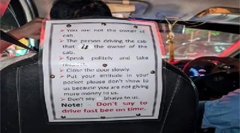 తన క్యాబ్ ఎక్కే ప్రయాణికులకు ఓ డ్రైవర్ పెట్టిన ఏడు రూల్స్ ప్రస్తుతం సోషల్ మీడియాలో వైరల్ గా మారాయి. డ్రైవింగ్ సీటు వెనుక వైపు చిన్నసైజు బోర్డు రూపంలో ఏడు రూల్స్ పట్టికను ఏర్పాటు చేశాడు. తనతో మర్యాదగా మసలుకోవడంతో పాటు యాటిట్యూడ్ చూపించకూడదని ఇలా ఏడు విషయాలను ప్రస్తావిస్తూ రూల్స్ బోర్డును ఏర్పాటు చేసుకున్నాడు. ఓ ప్రయాణికుడు ఆ క్యాబ్ ఎక్కిన సందర్భంలో తన కంటబడ్డ ఆ రూల్స్ బోర్డును ఫొటో తీసి సోషల్ మీడియాలో పోస్ట్ చేశాడు. దాంతో అది కాస్తా వైరల్ గా మారడంతో నెటిజన్లు తమదైన శైలిలో స్పందిస్తున్నారు.