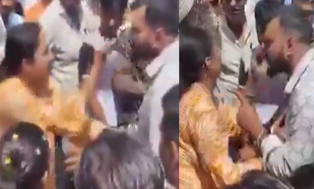 ప్రియుడిని చొక్కా పట్టుకుని కొట్టిన యువతి